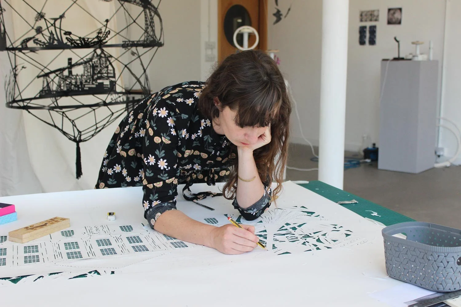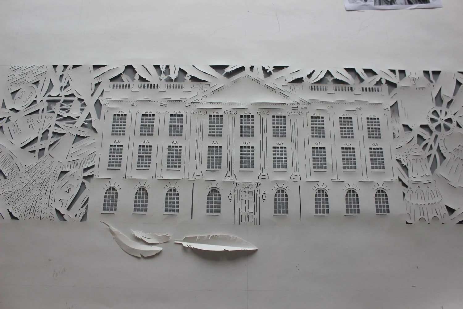 The residency was spent researching the work for around 6 months, and the two final artworks (which can be viewed here) were cut from 2 sheets of paper, over the course of six weeks as part of another residency ‘Testing Ground’ at Yorkshire Art Space.